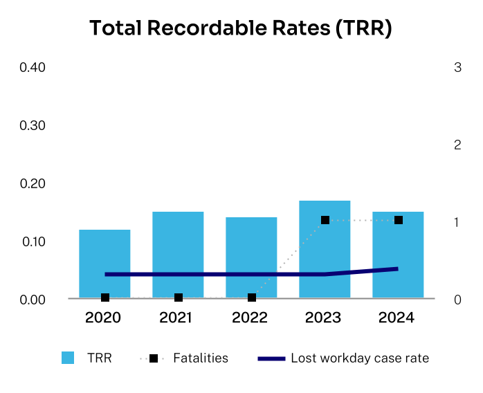 our TRR performance was improved compared to 2023. However, we had an increase in serious incidents, including one fatality.