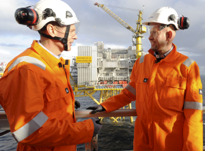 Steinar Våge, ConocoPhillips Europe president (pictured, left), thanked all those who had contributed to the success of the Ekofisk South project - the Norwegian authorities, the companies in the Ekofisk license, all suppliers and contractors and, not least, all ConocoPhillips’ own employees involved in the project. He also stressed the cooperation between Aker Solutions and the various departments on the Ekofisk Complex in the offshore completion phase.